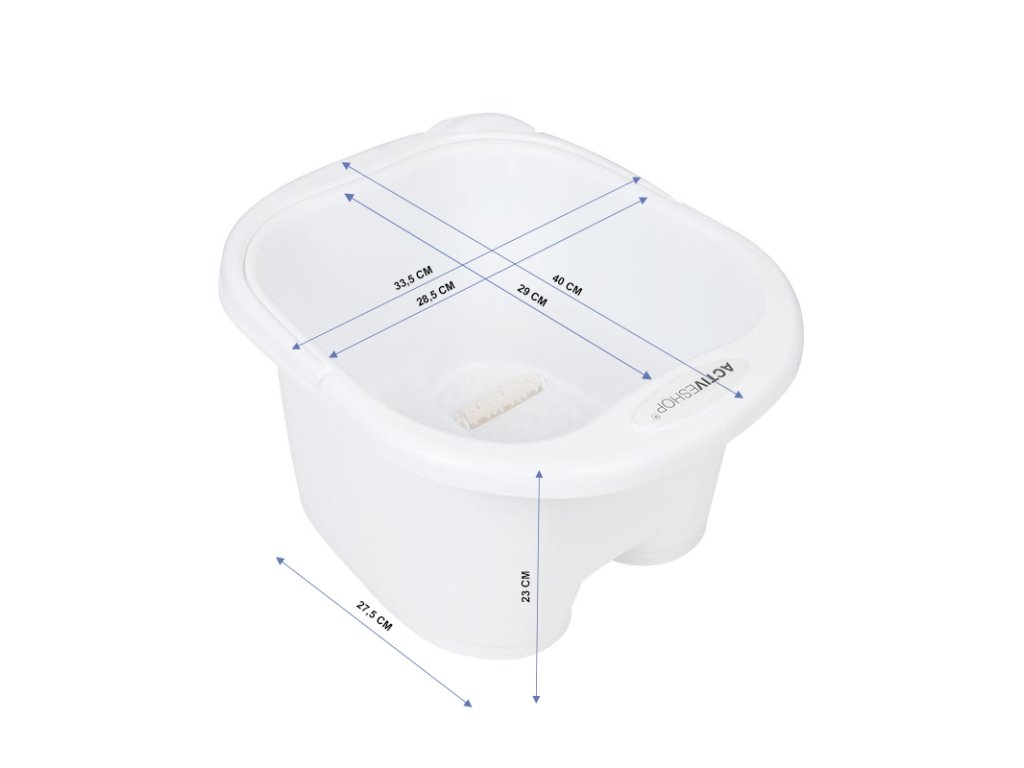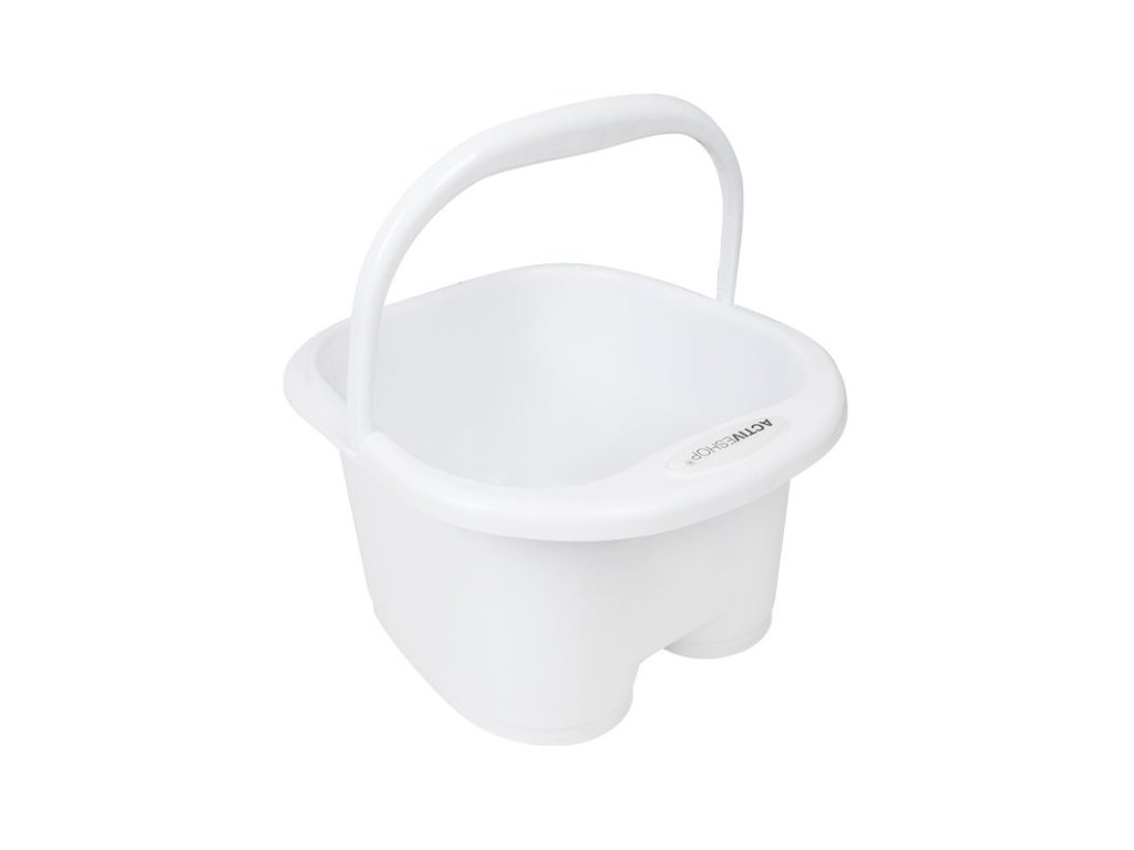 Vanička pro namáčení nohou před pedikúrou. Vyrobeno z plastu s profilovaným dnem a masážními válečky. Vybaveno rukojetí pro přenášení a snadné nalévání obsahu.