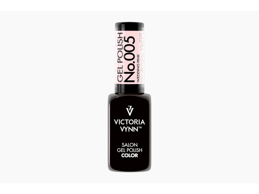 Gel lak 005 Wedding Pink od značky Victoria Vynn nabízí světle růžový tón vhodný pro svatební styl, elegantní vzhled nebo jemné použití v každodenní manikúře.